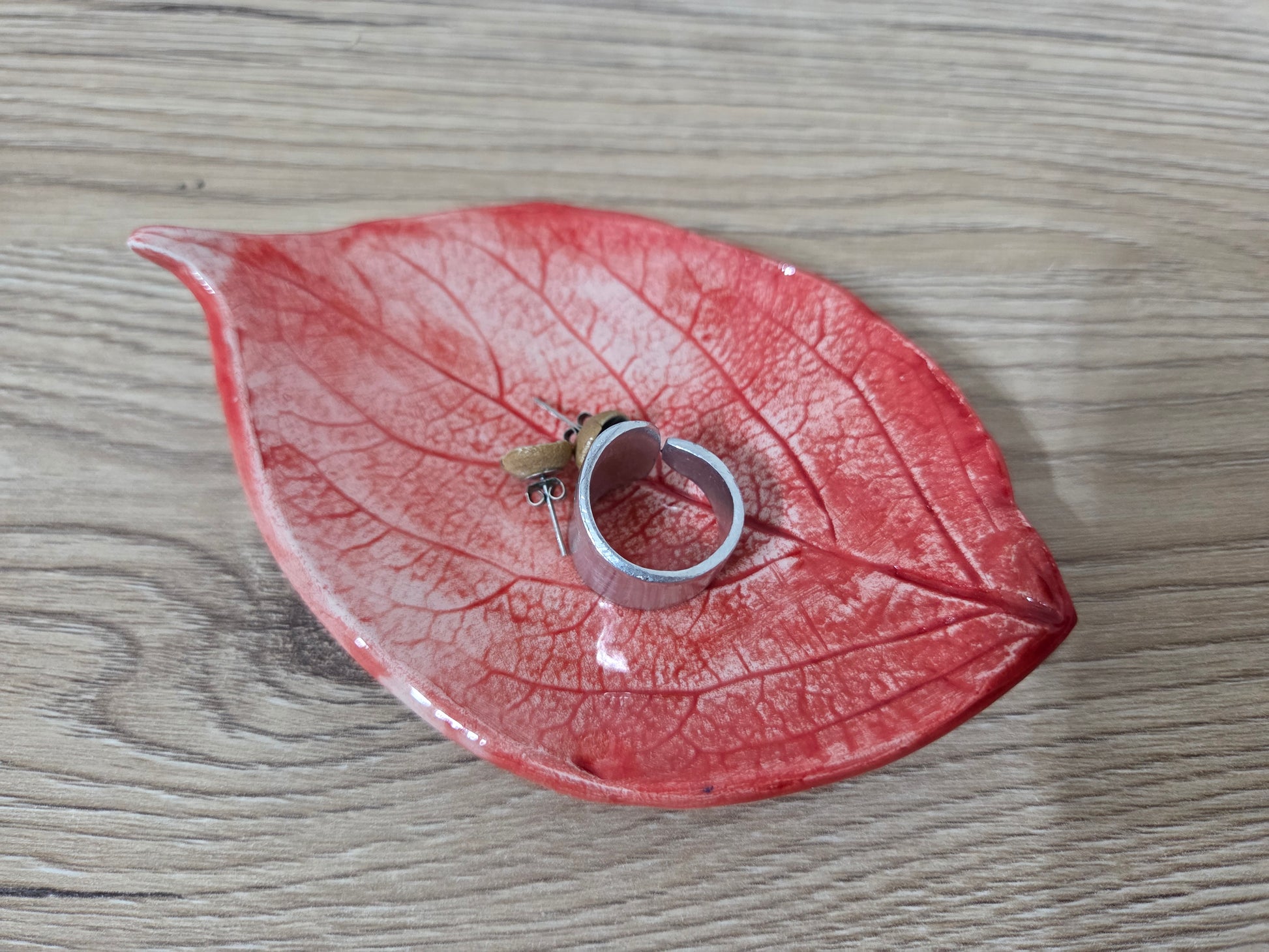 Foglia svuotatasche ,portagioie in ceramica fatto a mano